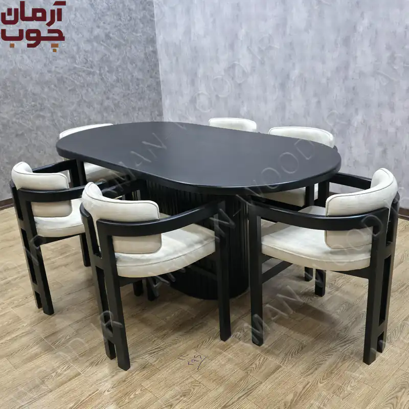ویژگیهای میز ناهارخوری 6 نفره چوبی مشکی مات مدل اچ و سبدی