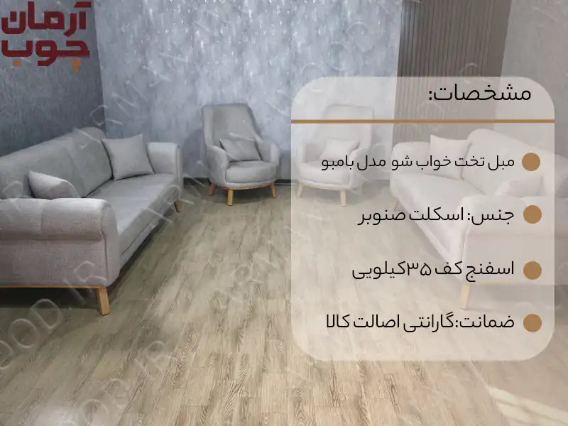 مبل راحتی بامبو مناسب برای خانههای مدرن، آپارتمانها، ویلاها، دفاتر کار و حتی هتلها و اقامتگاهها است. قابلیت تخت خواب شو بودن، این مبل را به انتخابی چندکاره و کاربردی تبدیل کرده است.
