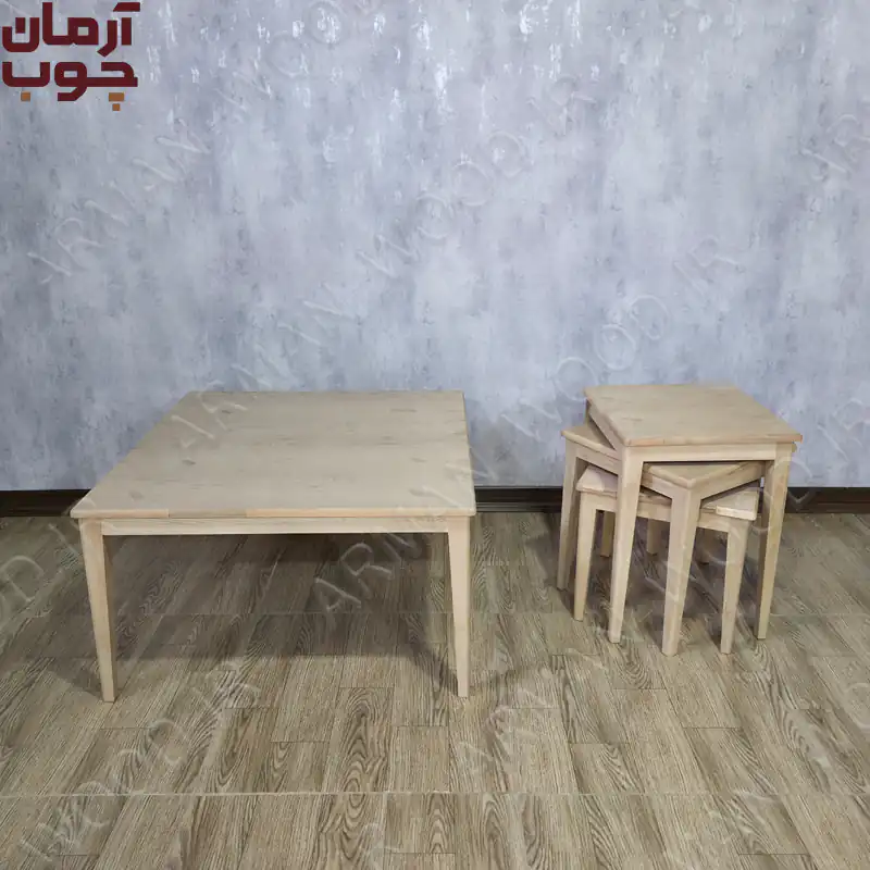 - ابعاد میز جلو مبلی چوبی خام: 80 در 80 سانتیمتر