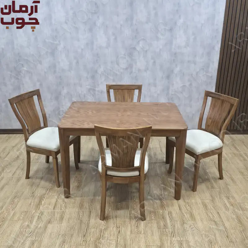 - ابعاد میز: ۱۲۰ در ۸۰ سانتیمتر (استاندارد ۴ نفره)