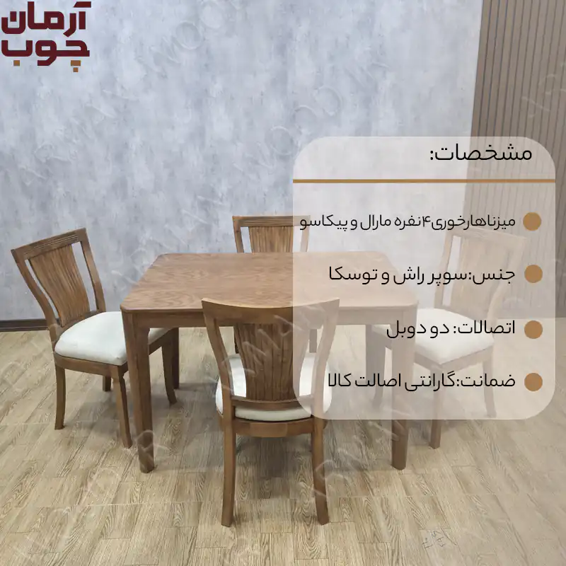 ویژگیهای میز ناهارخوری 4 نفره چوبی مدل مارال و پیکاسو