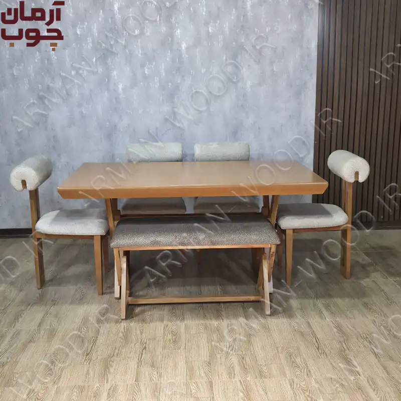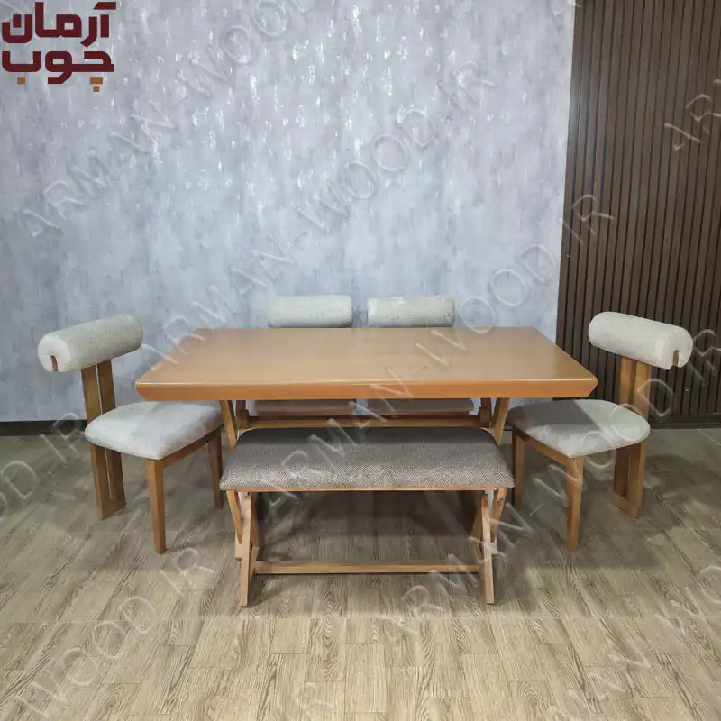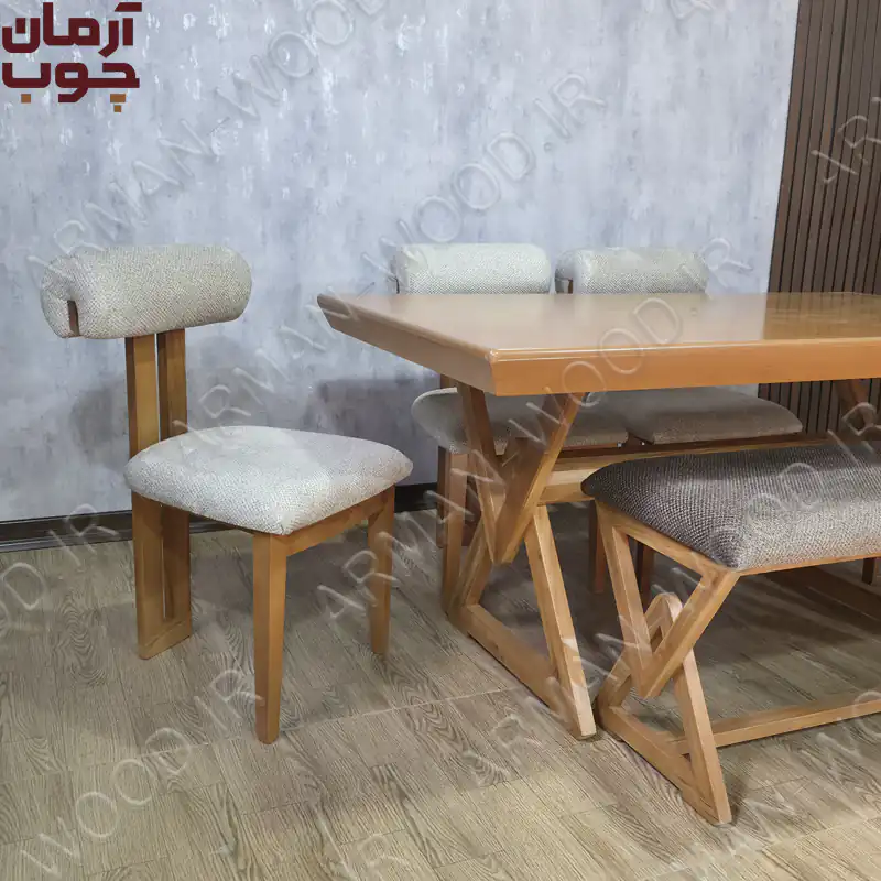- نام مدل: ست میزو نیمکت چوبی لیزا و صندلی چوبی تی