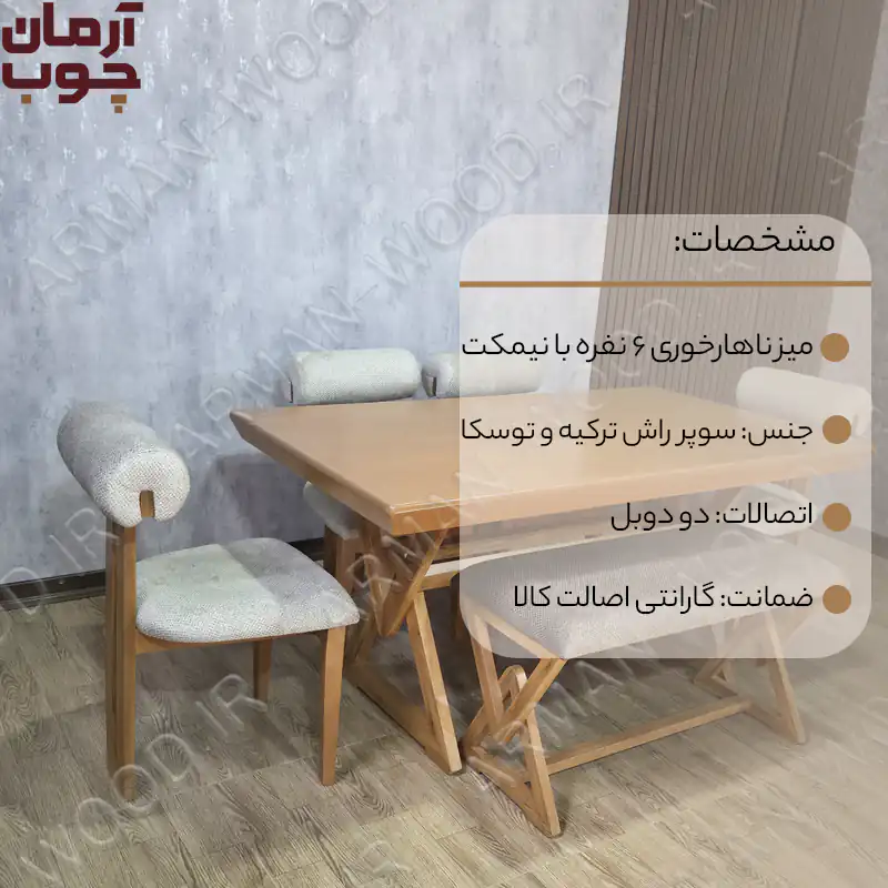 ویژگیهای میز ناهارخوری 6 نفره مدل تی