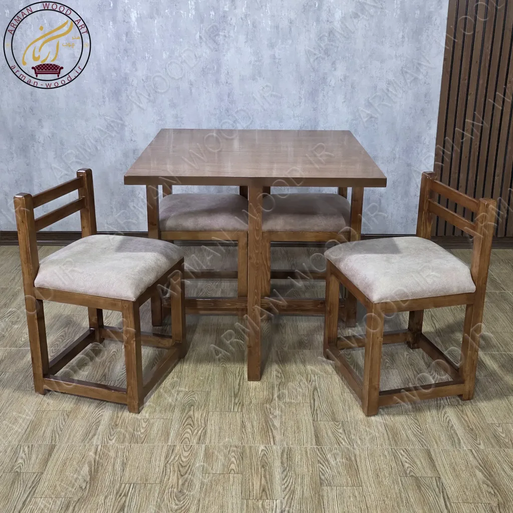 این ست ناهارخوری که مستقیماً از تولیدی میز ناهار خوری کم جا عرضه میشود، ترکیبی از هنر نجاری ایرانی و طراحی مدرن است.